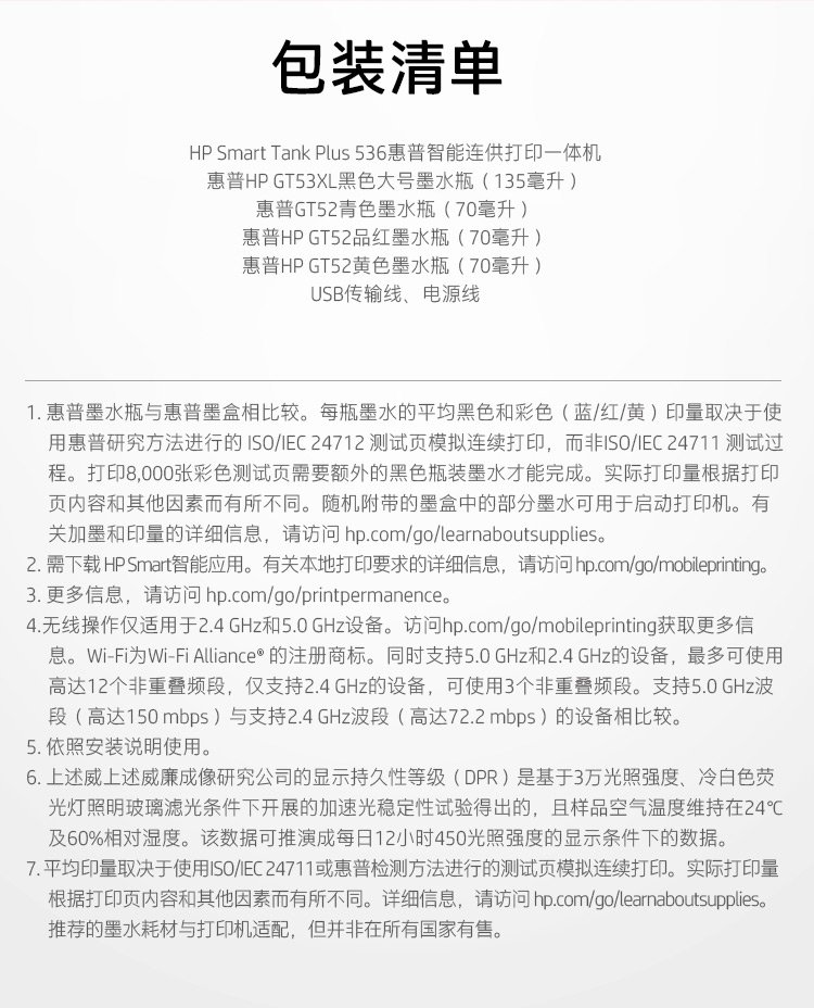 商品名称:HP Smart Tank 536 无线一体机