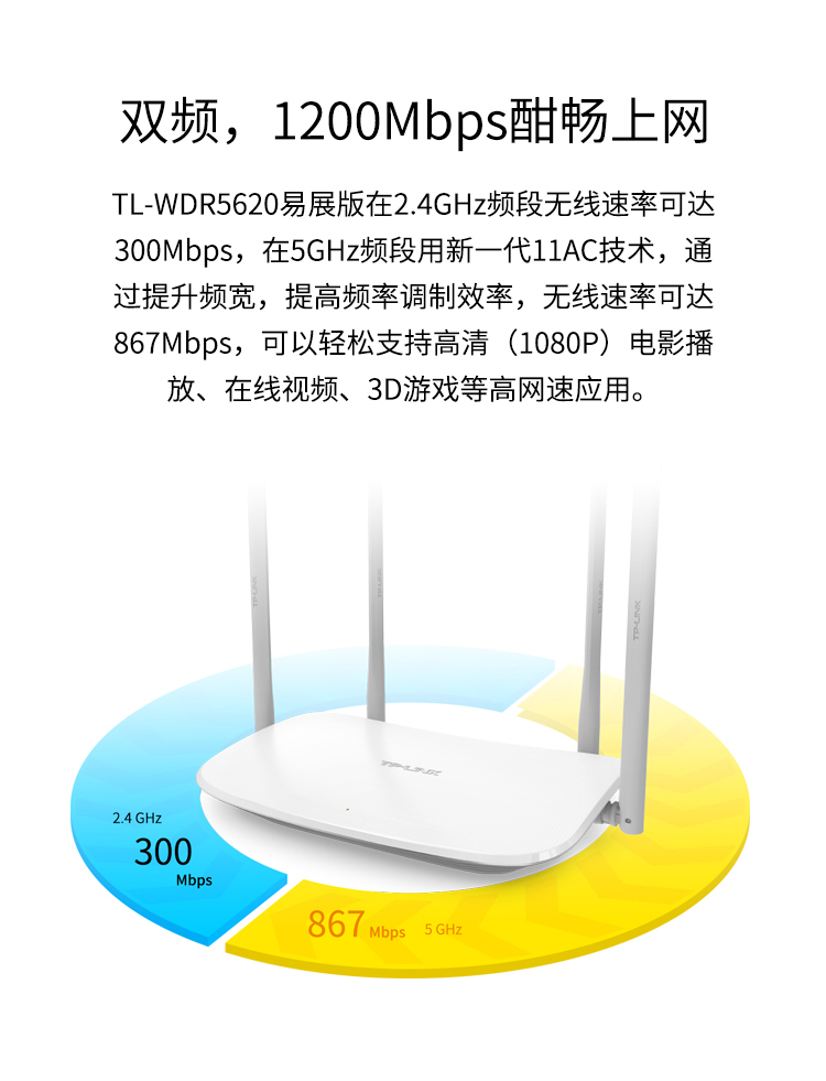 商品名称:TP-LINK TL-WDR5620易展版AC1200双频无线路由器