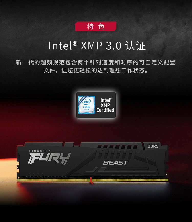 商品名称:金士顿 (Kingston) FURY 32GB DDR5 5200 台式机内存条 Beast野兽系列 骇客神条