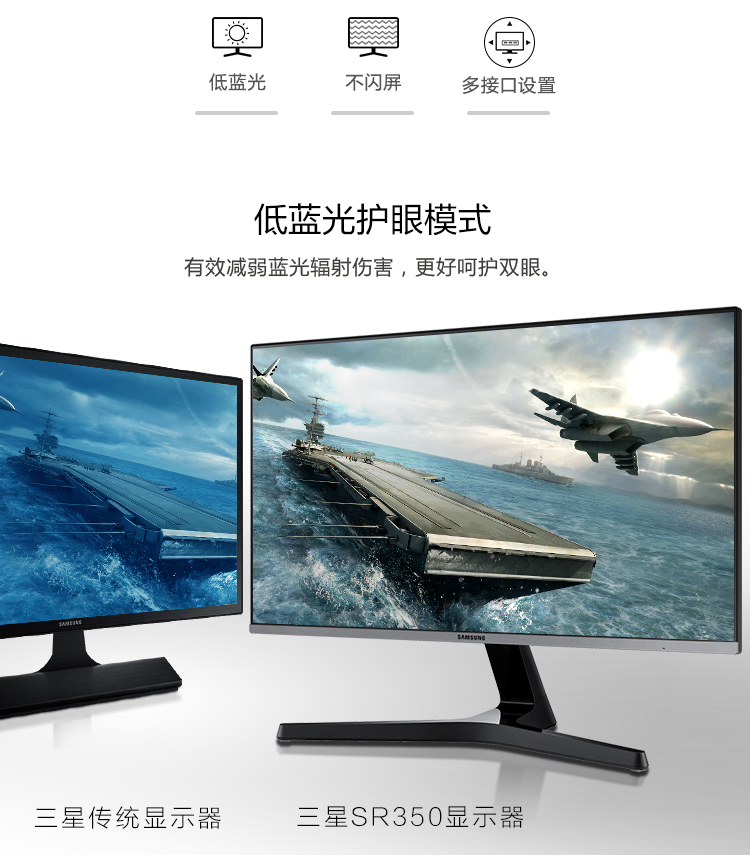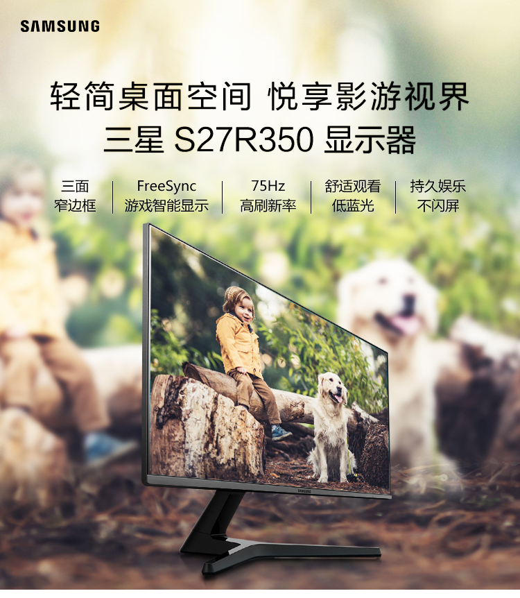 三星(SAMSUNG)27英寸 IPS 爱眼滤蓝光 可壁挂 FreeSync 窄边框 SR35 电脑办公显示器 S27R350FHC