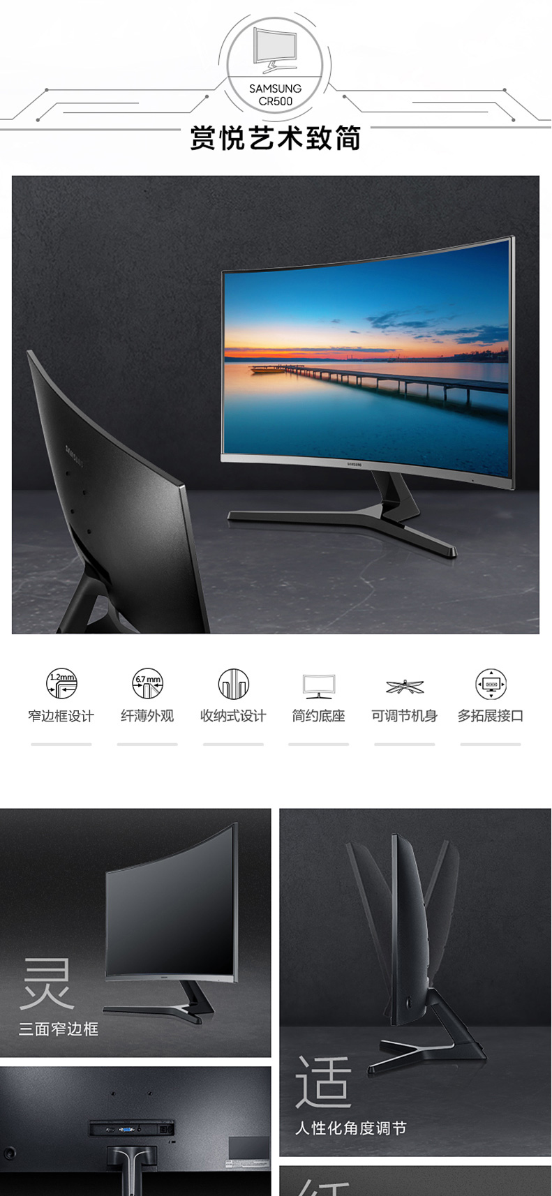 三星(SAMSUNG)27英寸 曲面 可壁挂 HDMI接口 节能爱眼认证 FreeSync CF39 电脑显示器 C27F391FHC