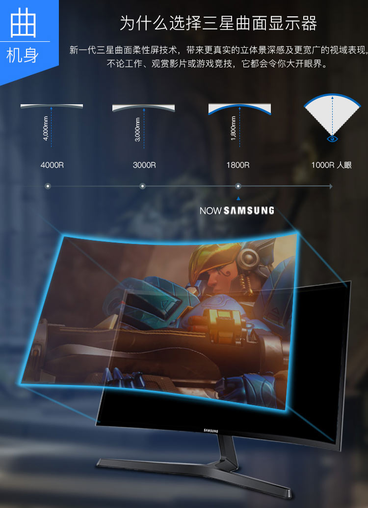 曲率:1800R|屏幕刷新率:60Hz|屏幕尺寸:27英寸