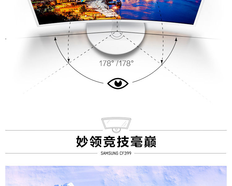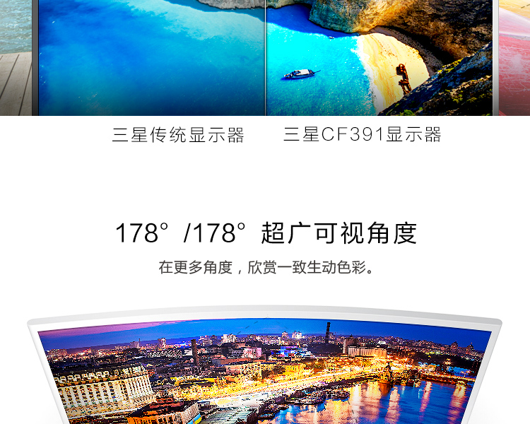 商品名称:三星(SAMSUNG)27英寸 曲面 可壁挂 HDMI接口 节能爱眼认证 FreeSync CF39 电脑显示器 C27F391FHC