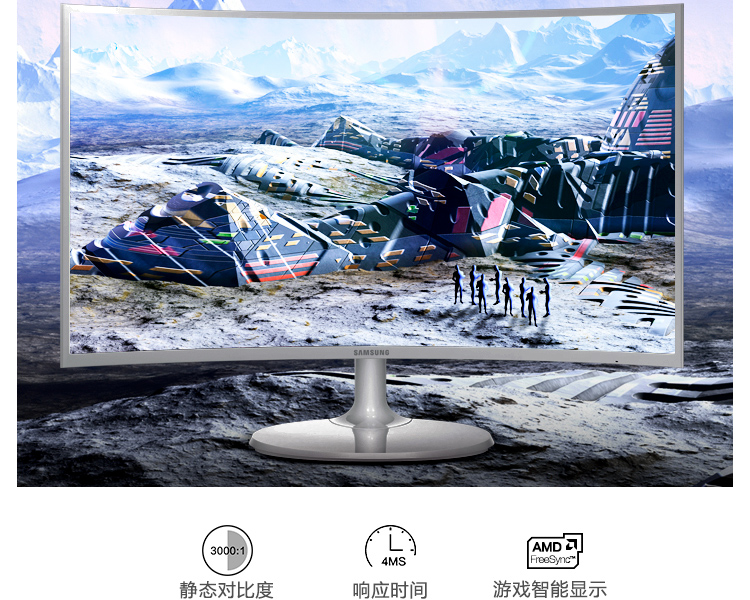 三星(SAMSUNG)27英寸 曲面 可壁挂 HDMI接口 节能爱眼认证 FreeSync CF39 电脑显示器 C27F391FHC