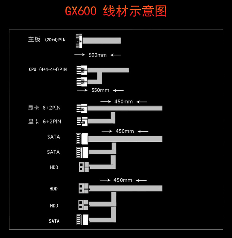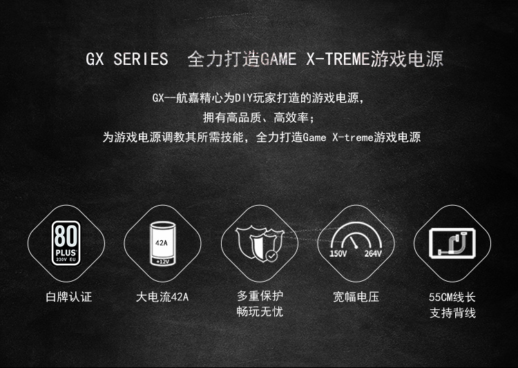 商品名称:航嘉GX系列游戏台式机电源 GX450 GX500 GX600 GX700 GX800