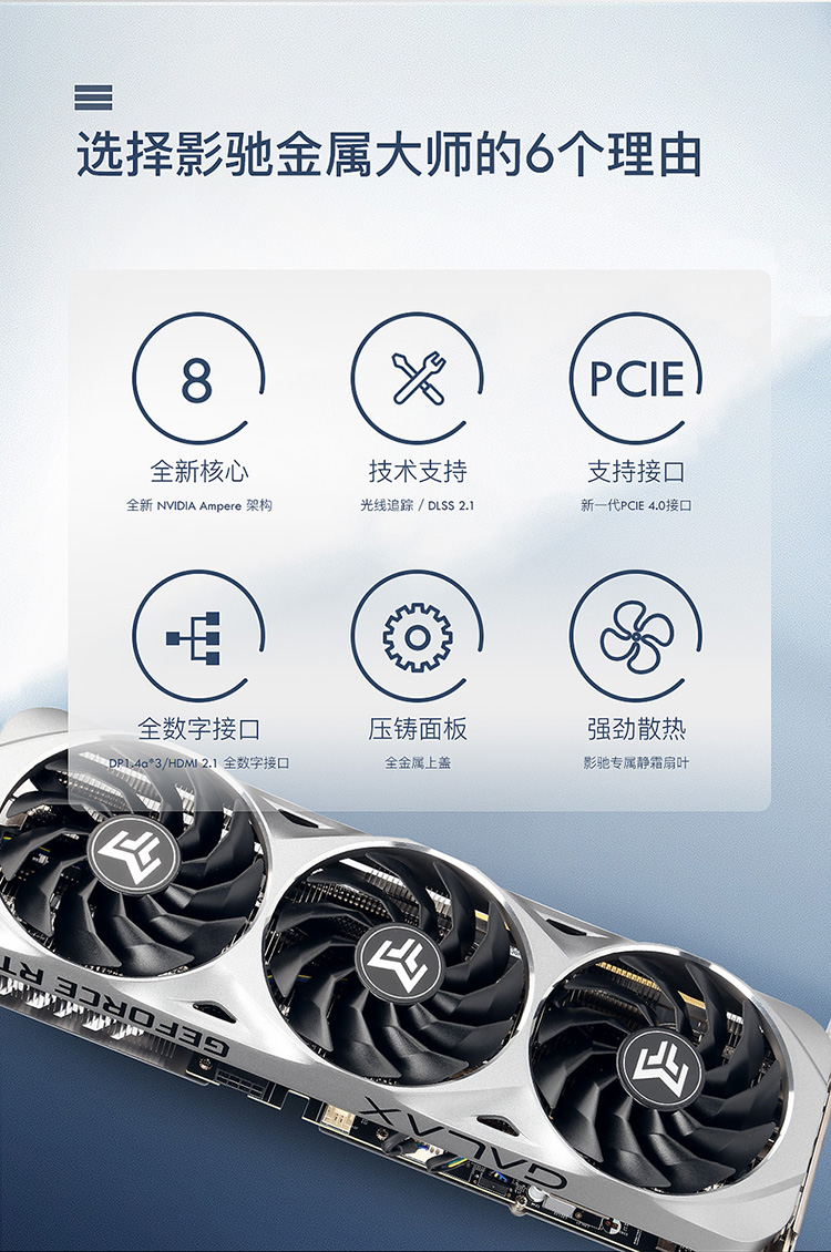 影驰 (Galaxy)RTX3070\RTX3070Ti N卡台式机电竞游戏独立显卡 RTX3070 金属大师OC FG