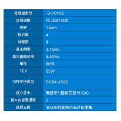 英特尔(Intel) 第10代CPU处理器 台式机 原盒 i3-10105【4核8线程】
