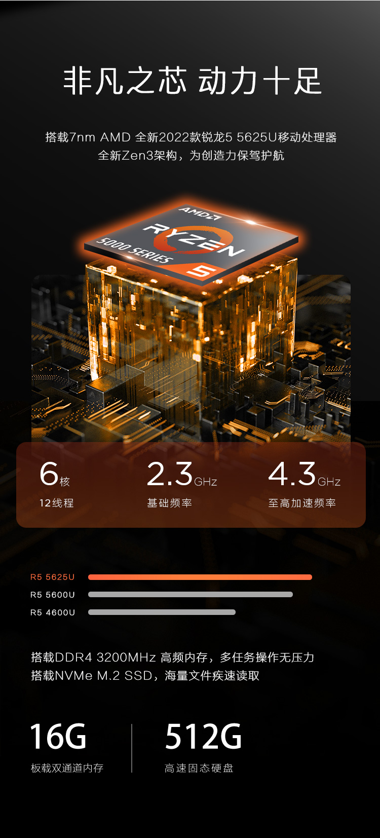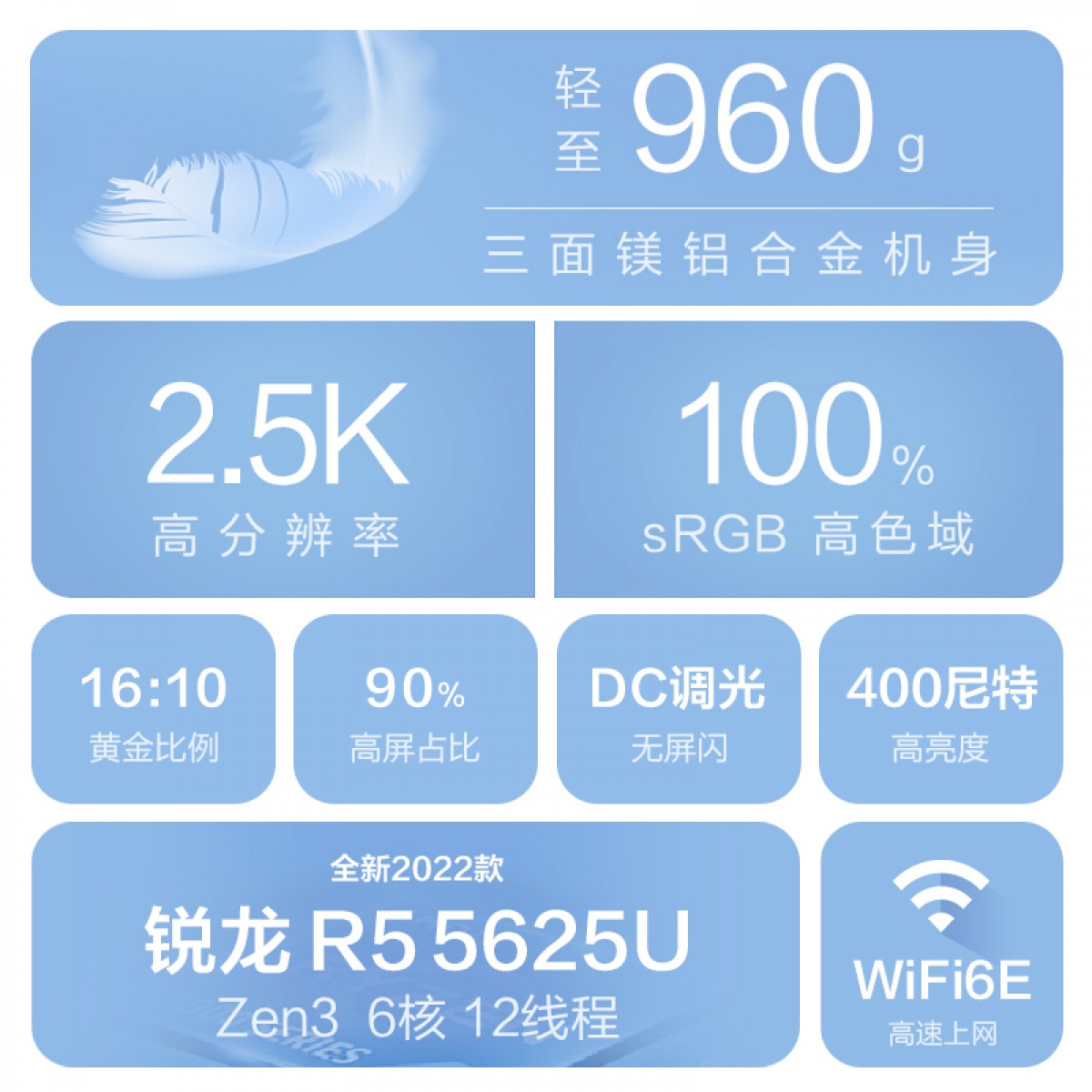 锐龙5 5625U 16G内存 512G固态硬盘 高色域 2.5k高亮炫彩屏(月光银)