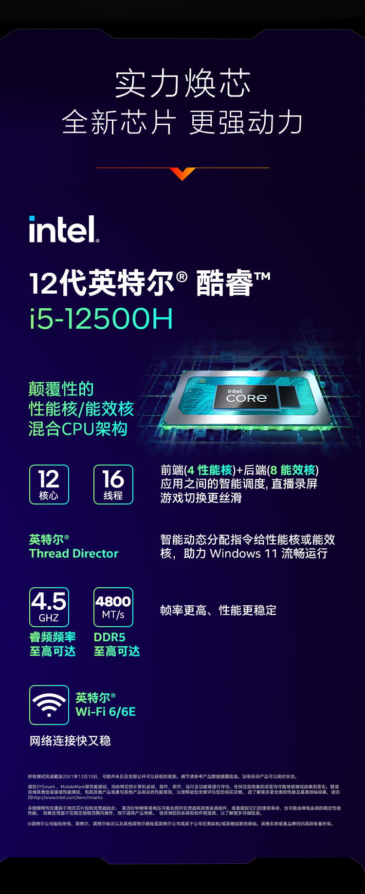 12代英特尔酷睿i5-12500H 16G 512G RTX3050Ti 144Hz