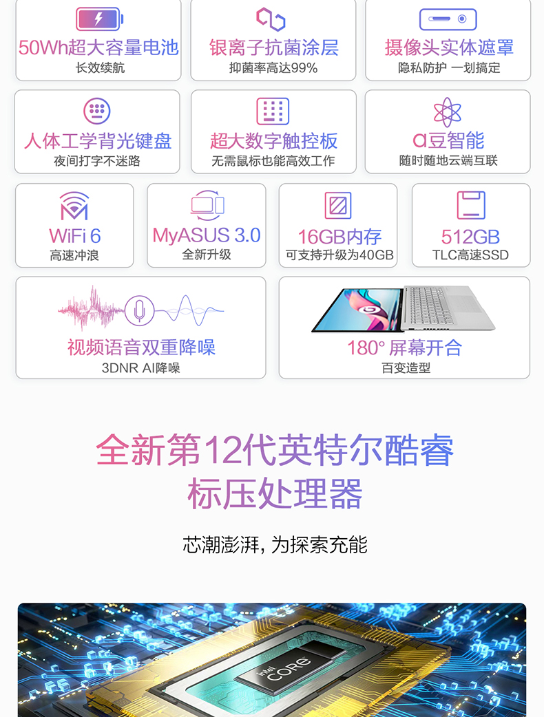 华硕a豆14 2022 高性能办公学生轻薄笔记本电脑