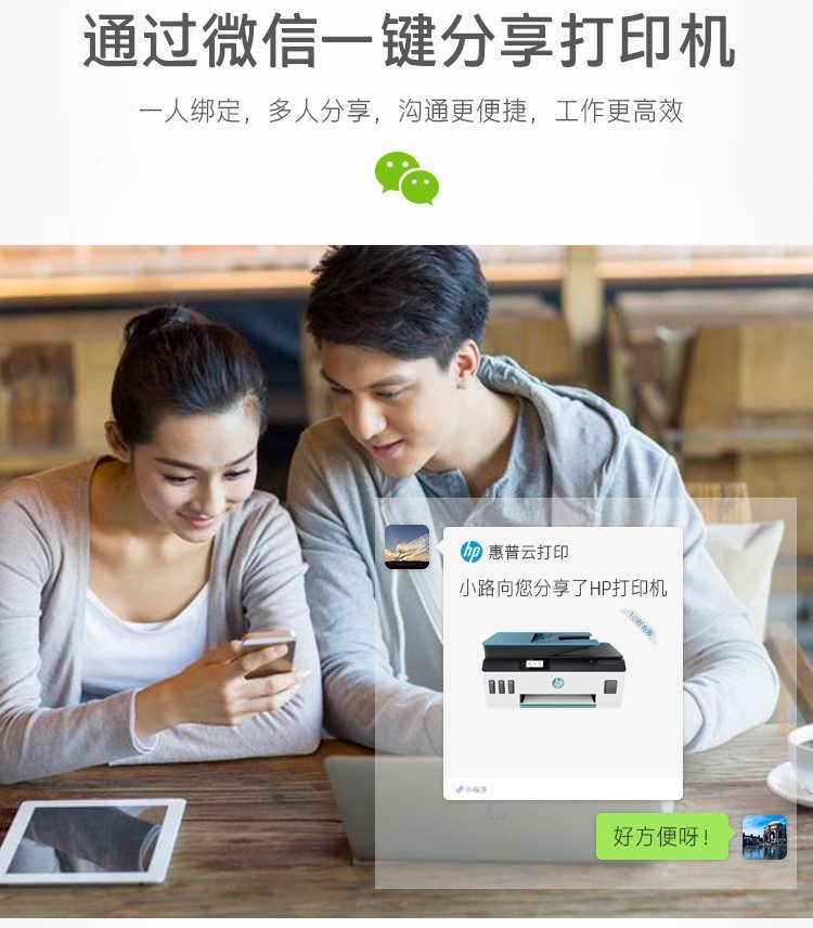 大印量,单页打印成本低至1分钱;自动进纸器实现35页连续复印扫描;微信远程打印