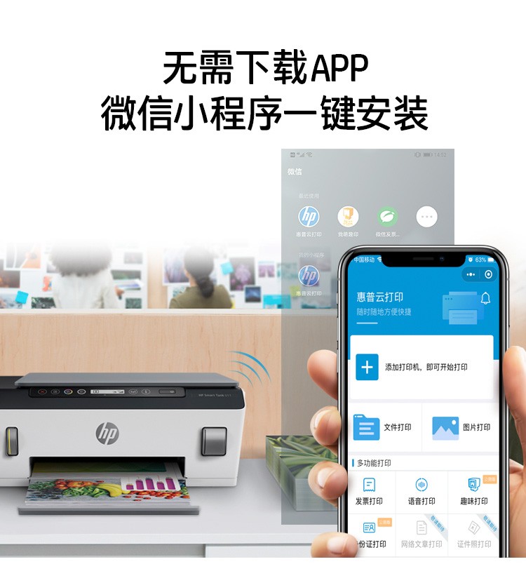 打印复印扫描 无线打印一体机手机微信打印家用学生打印复印一体机惠普511打印机 加墨打印机