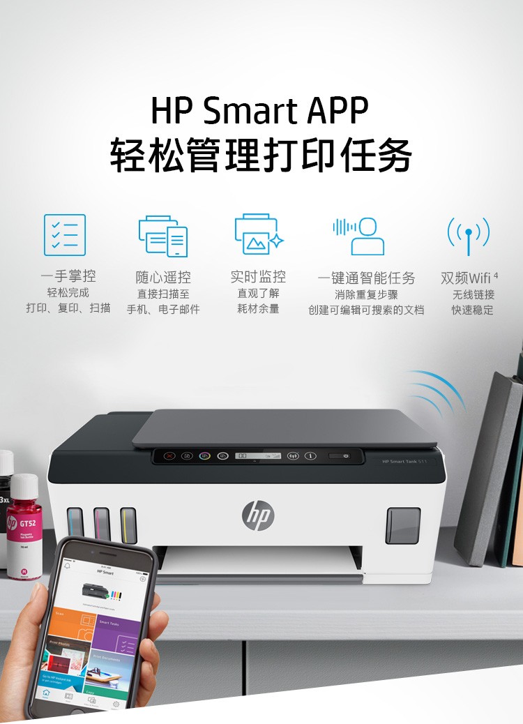 商品名称:hp惠普Tank511 A4彩色喷墨连供一体机