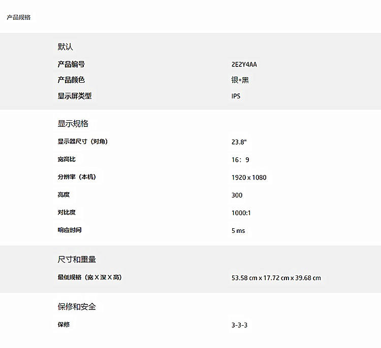 惠普(HP)M24fw 23.8英寸IPS显示器