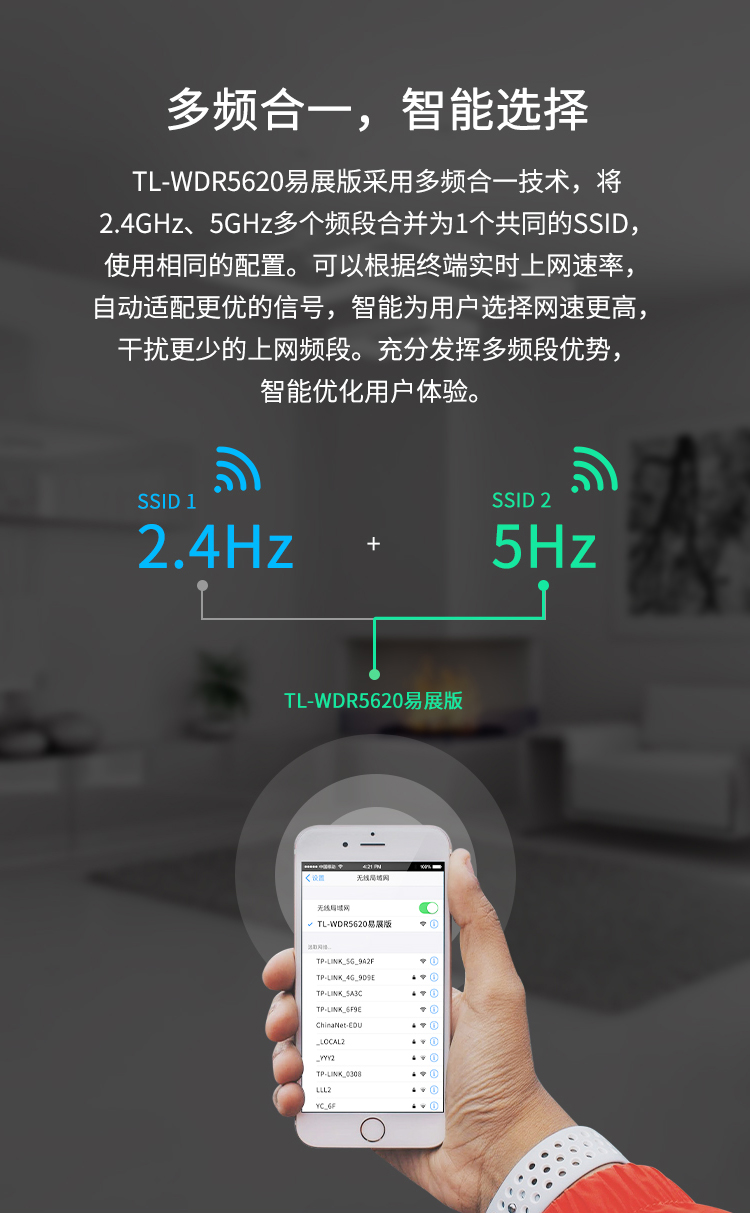 商品名称:TP-LINK TL-WDR5620易展版AC1200双频无线路由器