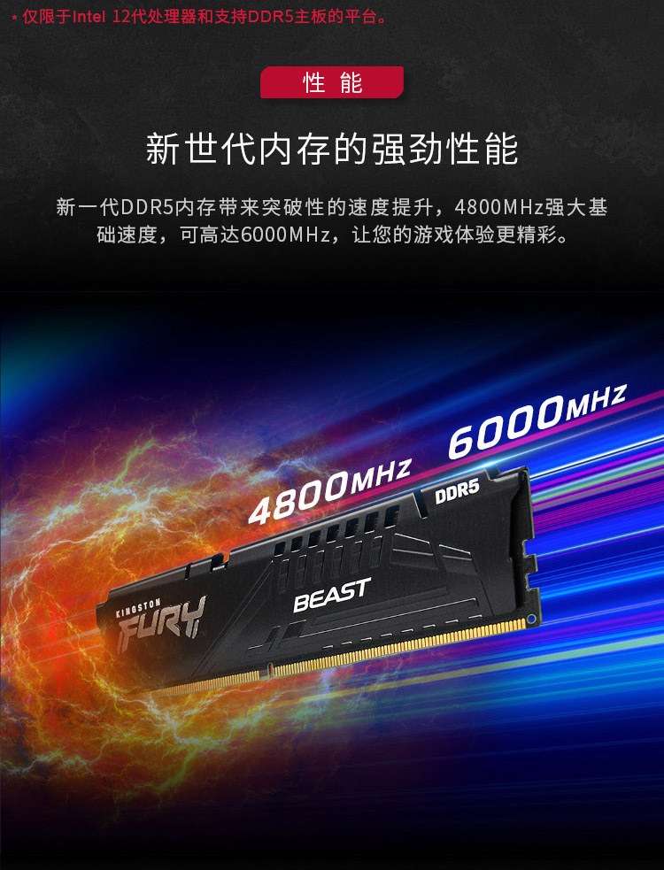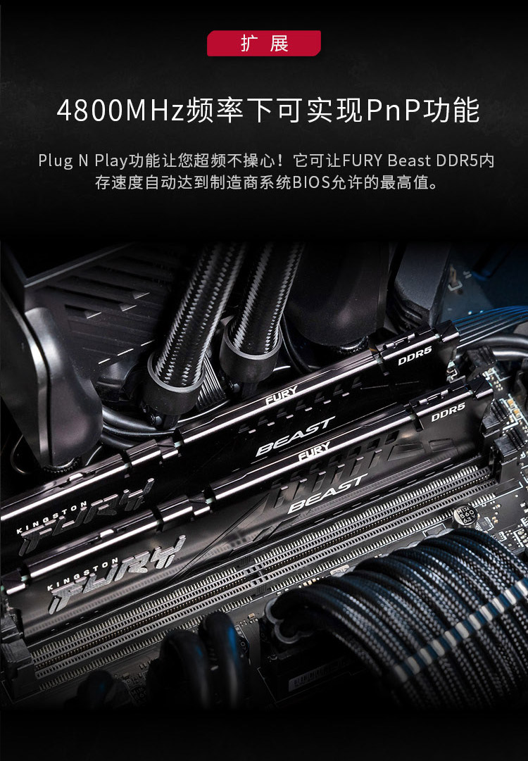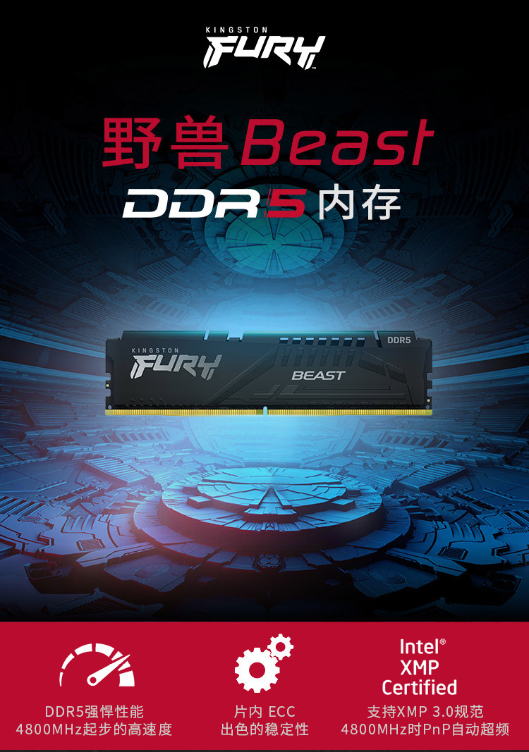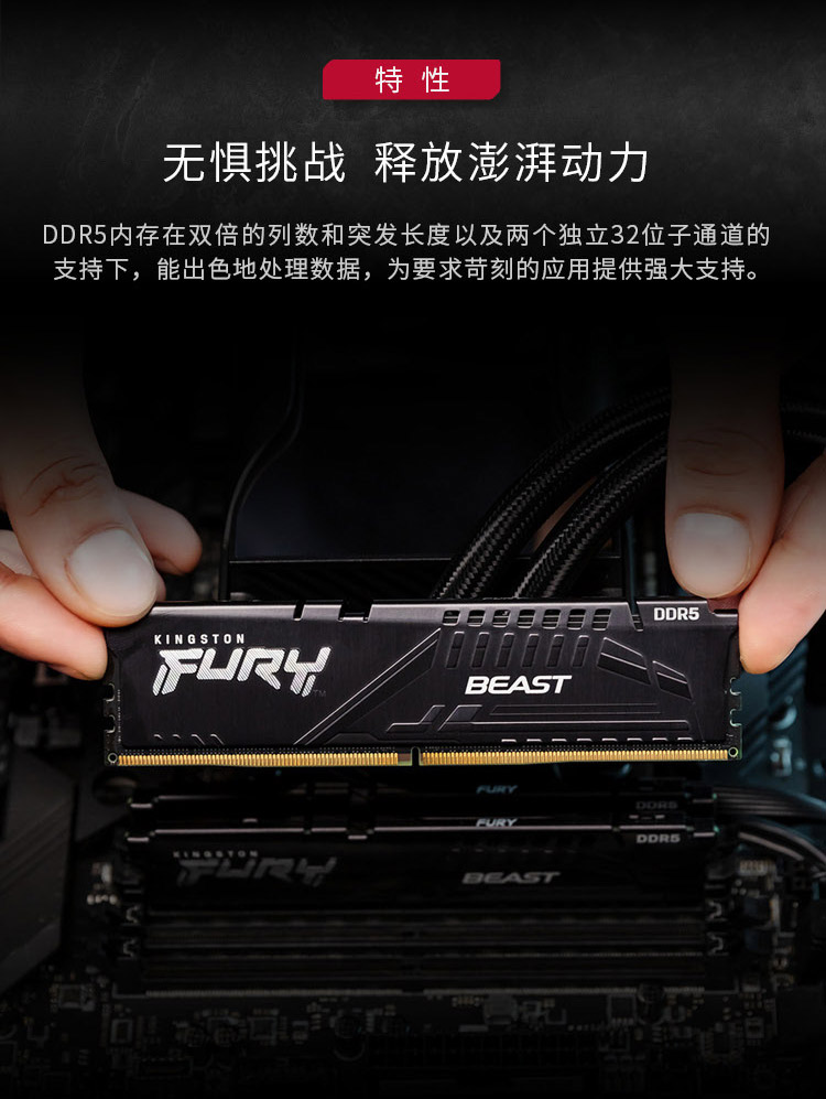 商品名称:金士顿 (Kingston) FURY 32GB DDR5 5200 台式机内存条 Beast野兽系列 骇客神条