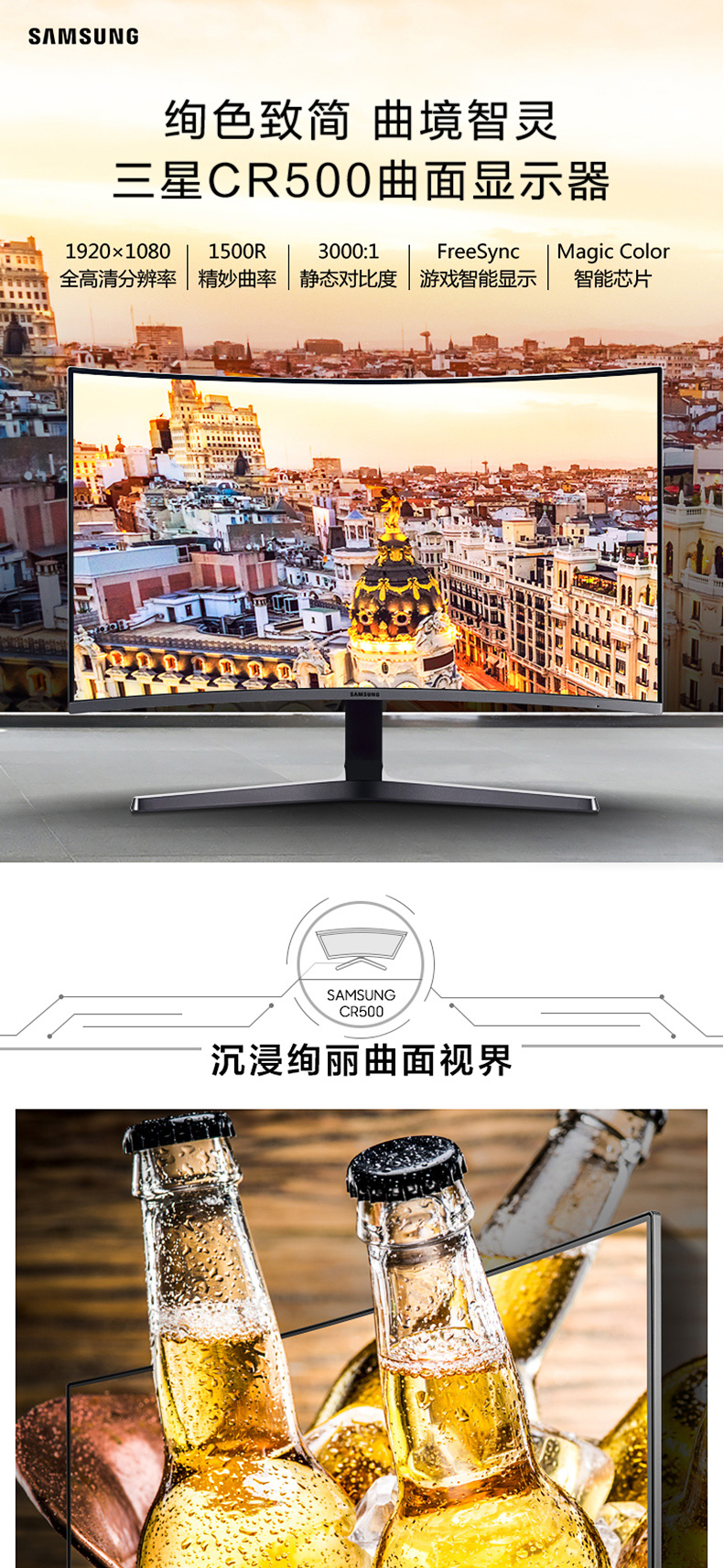 商品名称:三星(SAMSUNG) 75Hz电竞显示器31.5英寸1500R曲面FHD爱眼FreeSync可壁挂 游戏不闪屏C32R500FHC(VGA+HDMI)