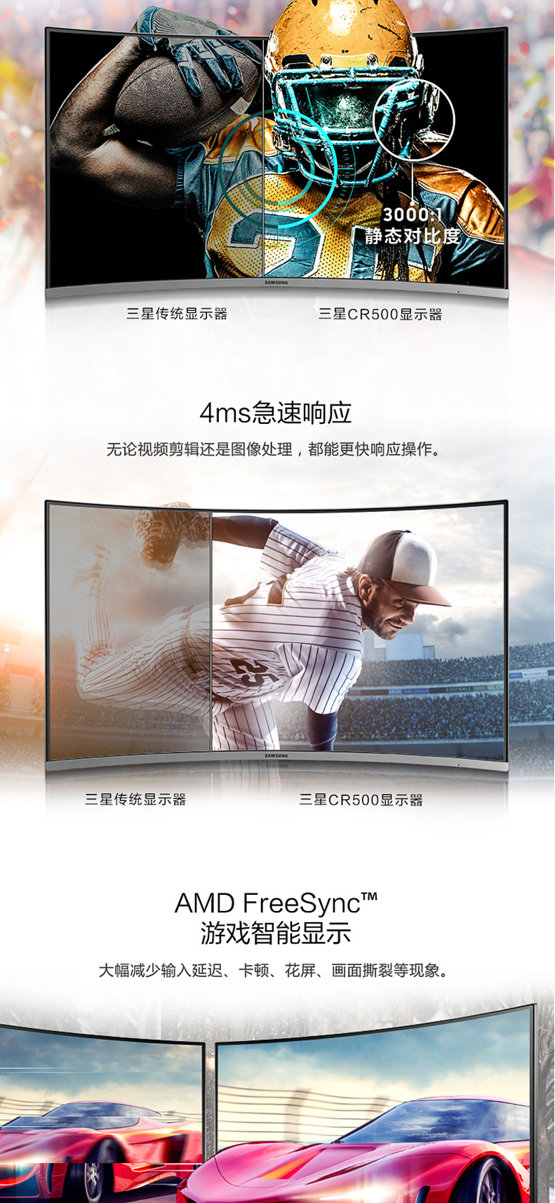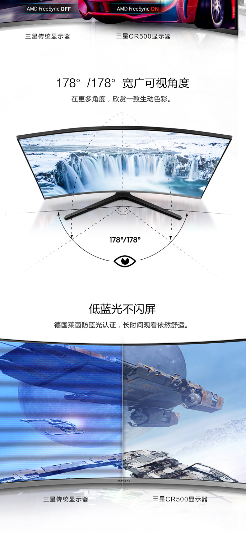 三星(SAMSUNG) 75Hz电竞显示器31.5英寸1500R曲面FHD爱眼FreeSync可壁挂 游戏不闪屏C32R500FHC(VGA+HDMI)
