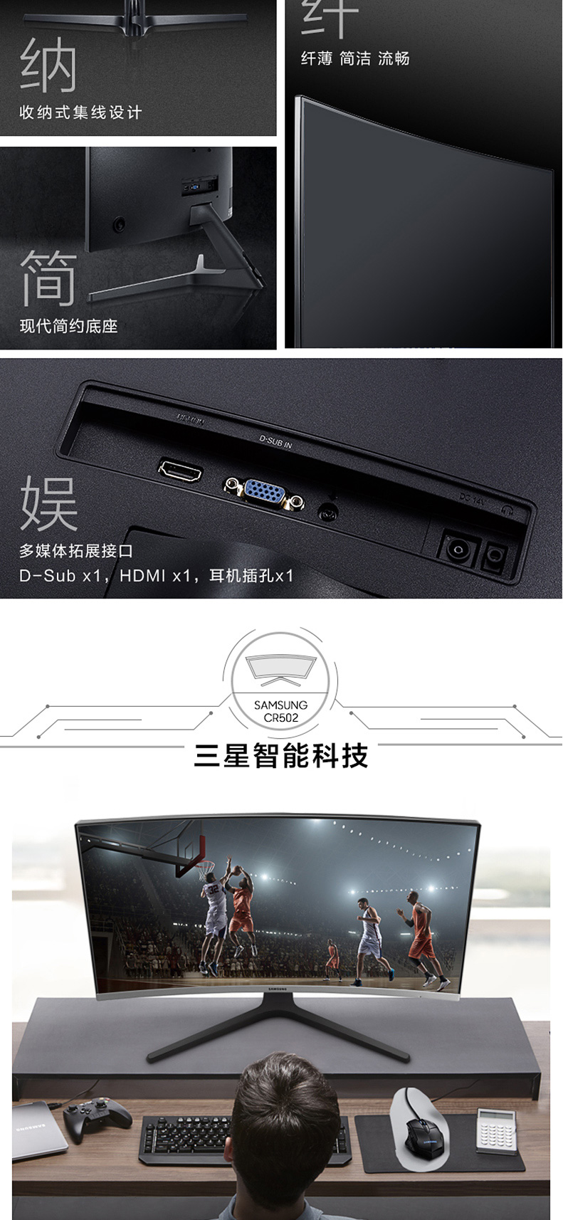 三星(SAMSUNG)27英寸 曲面 可壁挂 HDMI接口 节能爱眼认证 FreeSync CF39 电脑显示器 C27F391FHC