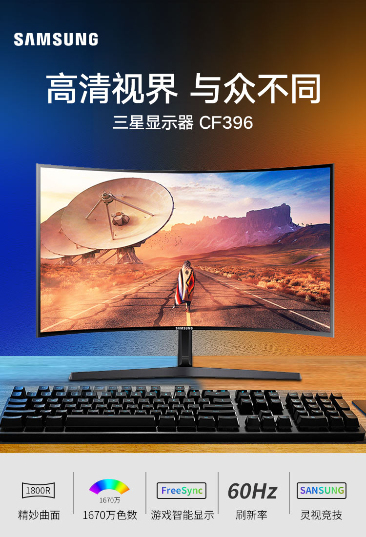 商品名称:三星(SAMSUNG) C27F396FHC 27英寸 曲面VA广视角高清电脑显示器 黑色