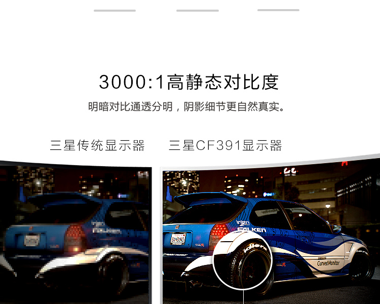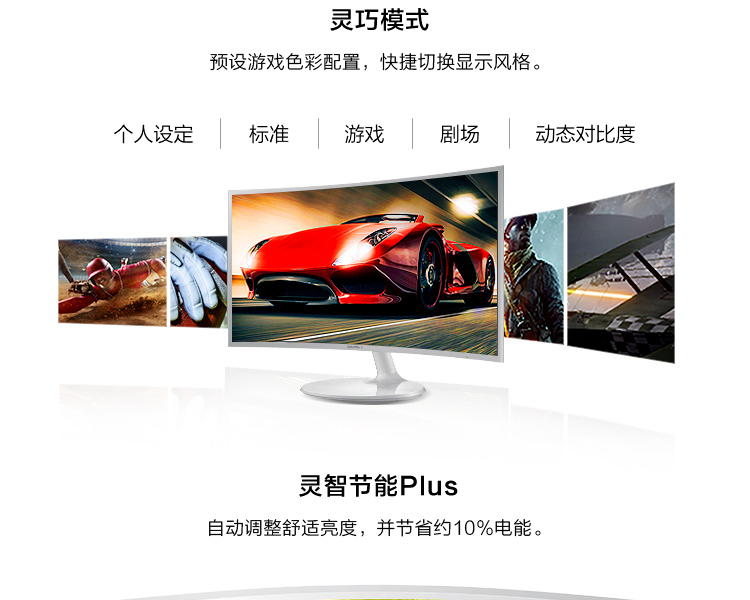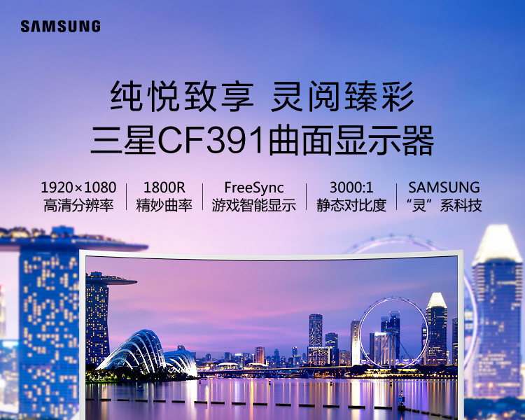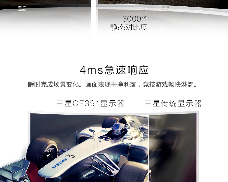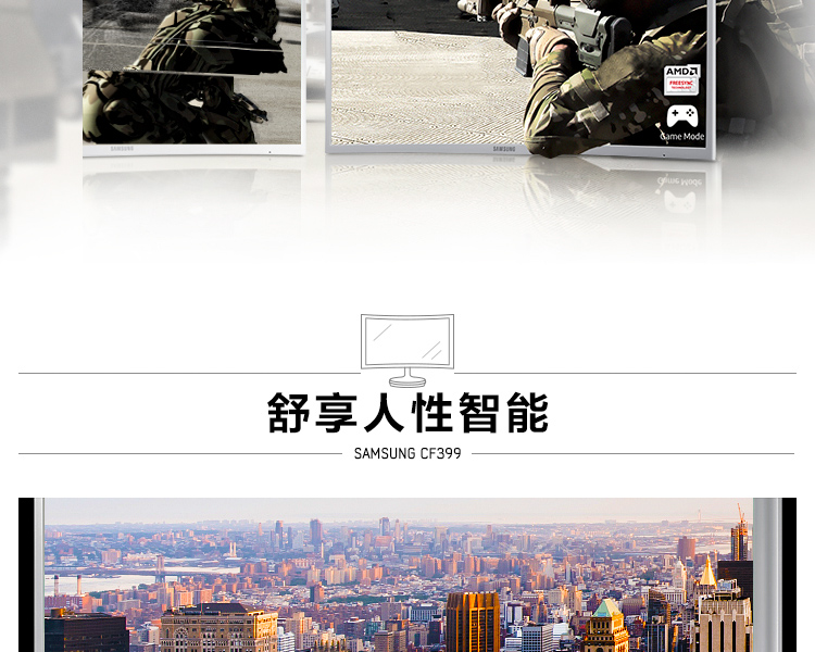 商品名称:三星(SAMSUNG)27英寸 曲面 可壁挂 HDMI接口 节能爱眼认证 FreeSync CF39 电脑显示器 C27F391FHC