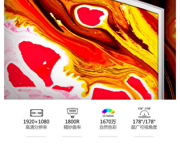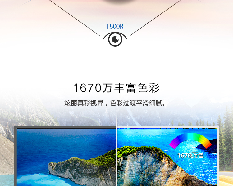曲率:1800R|3000:1|接口:HDMI,VGA,音频/耳机输出