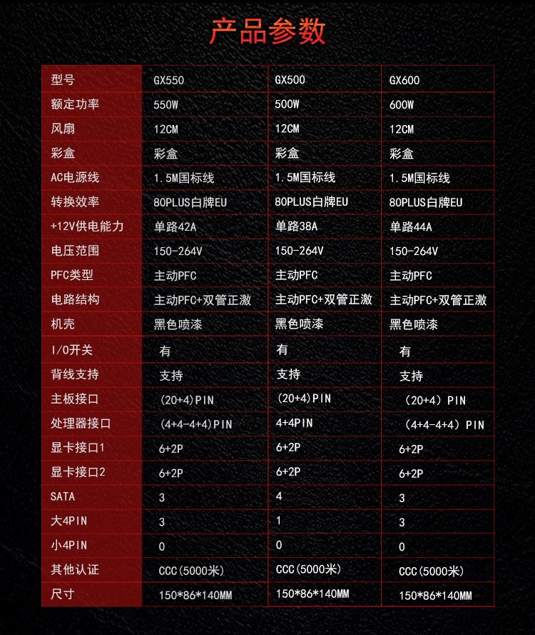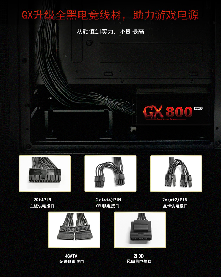 商品名称:航嘉GX系列游戏台式机电源 GX450 GX500 GX600 GX700 GX800