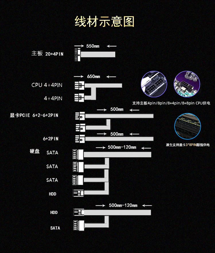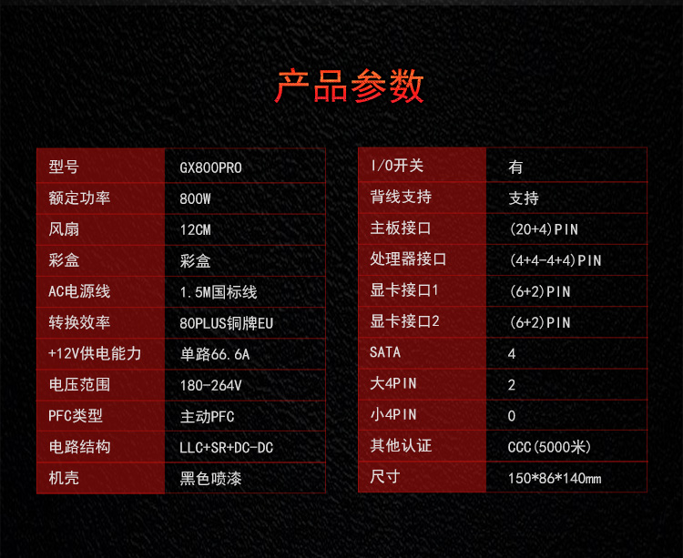 长140mm;宽150mm;高86mm 8pin PCI-E接口:2个 风扇:12cm 4个SATA接口