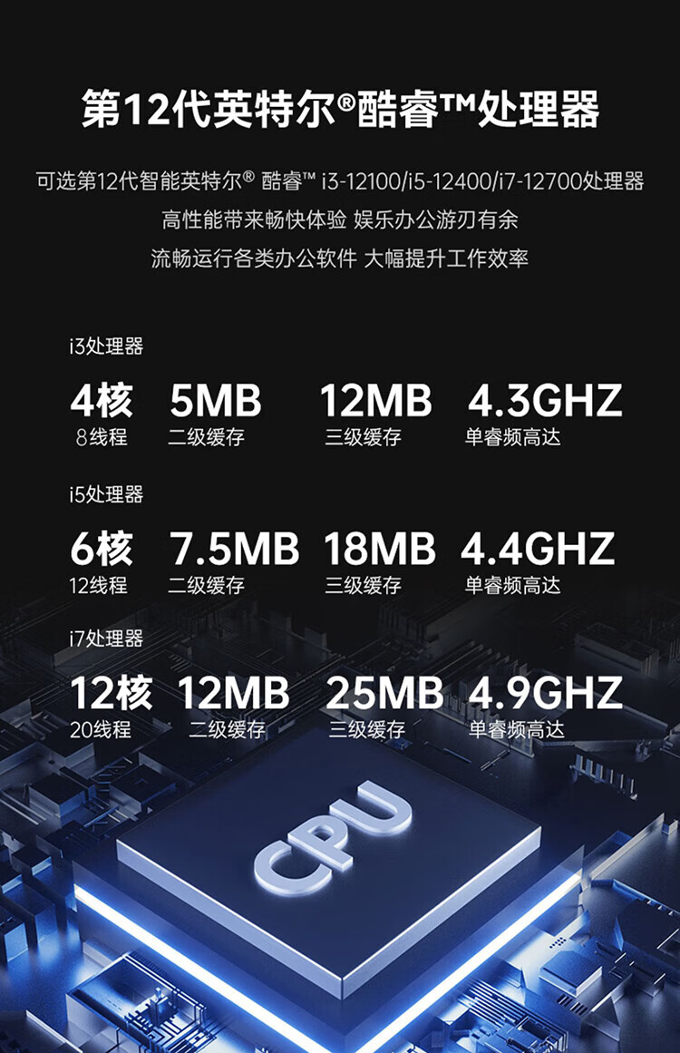 高频内存无卡顿,全新12代酷睿i3,i5,i7处理器,注册五年质保,品质保障,商务办公家用网课助手