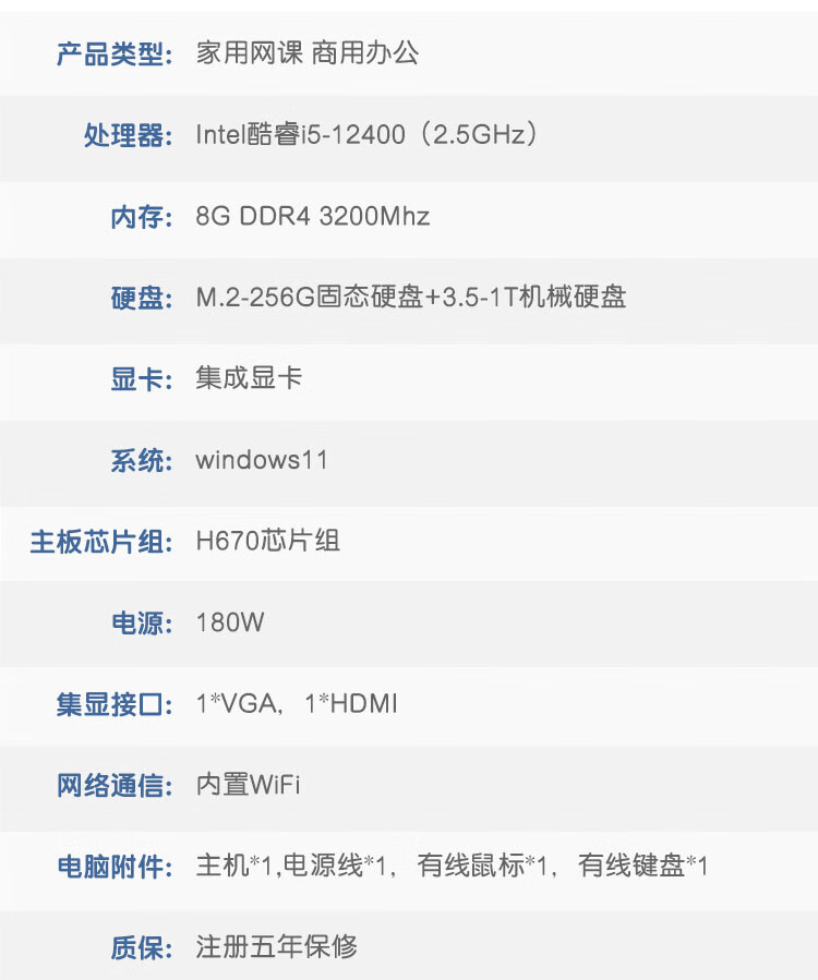 intel 12代i5-12400 8G 256G+1TB 集显 (定制)